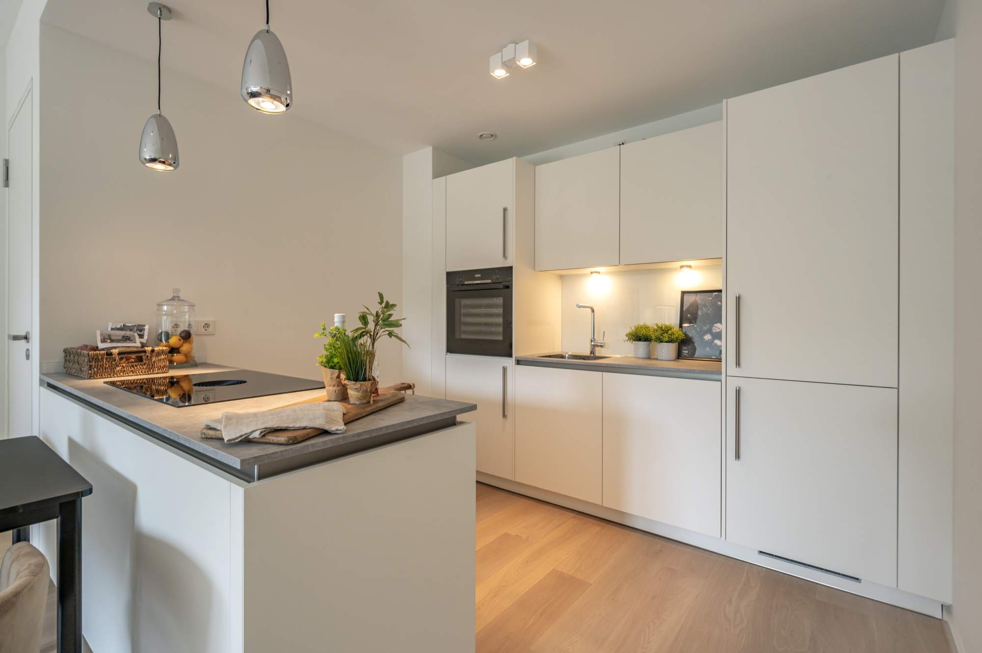 Die hochwertigen Marken-Einbauküchen, teilweise mit Kochinsel, verfügen über einen Backofen, eine Spüle, eine Kühl- und Gefrierkombination sowie einen Geschirrspüler. Ein besonderes Highlight ist das Induktionskochfeld mit integriertem Kochfeld-Dunstabzug des Markenherstellers BORA. Die Wohnungen bieten zudem die Möglichkeit, eine Waschmaschine und einen Trockner anzuschließen.
