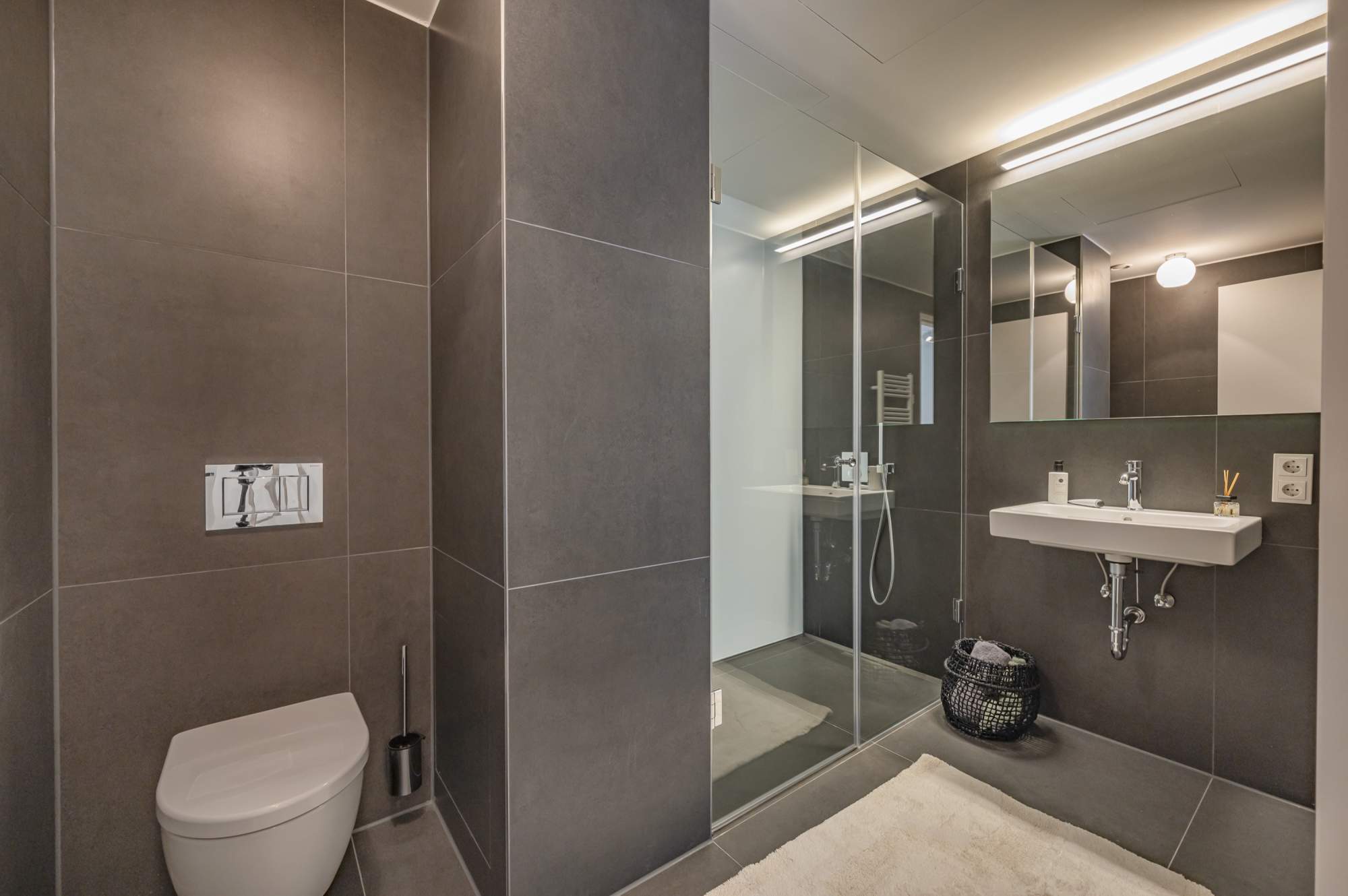 Schon das Entrée überzeugt durch den hochwertig gestalten Haupteingangsbereich mit einer Raumhöhe von fast fünf Metern und ausgewählten Materialien. Der hohe Ausstattungsstandard wird in den Wohnungen fortgeführt. Große Fensterfronten lassen die Wohnräume in einem hellen Licht erstrahlen und ein elektrisch gesteuerter, textiler Außensonnenschutz sorgt für die nötige Privatsphäre. Das Zusammenspiel der hochwertigen Materialien in den Wohnungen beeindruckt. Die zumeist offenen Wohn- und Essbereiche sowie die attraktiven Fußböden aus Eichen-Echtholzparkett lassen eine moderne Wohnatmosphäre entstehen. Eine separat ansteuerbare Fußbodenheizung in allen Räumen und ein aktives Be- und Entlüftungssystem mit Wärmerückgewinnung erzeugen ein gesundes Raumklima und verbreiten behagliche Wärme. Die Duschbäder bestechen durch anthrazitfarbene, zeitlos großformatige Fliesen und eine Walk In Dusche mit Rainshower-System und Echtglasabtrennung. Sanitärobjekte und Armaturen namhafter Hersteller aus stilvollen Designlinien präsentieren sich auf höchstem Niveau. Handtuchheizkörper mit individuellem Heizthermostat sind selbstverständlich. Größere Wohnungen haben zusätzlich ein Gäste-WC.